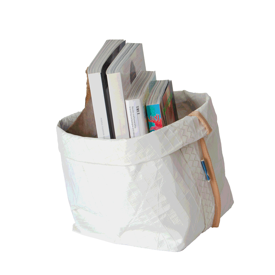 This bag is made out of recycled sails. The material has endured extreme conditions at sea and traveled to various ports around the globe. Give the sails a second life, as a bag for your favorite plant, for your towels at the pool, or to store books …